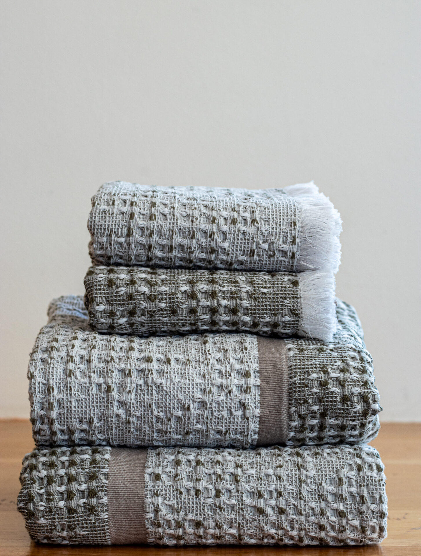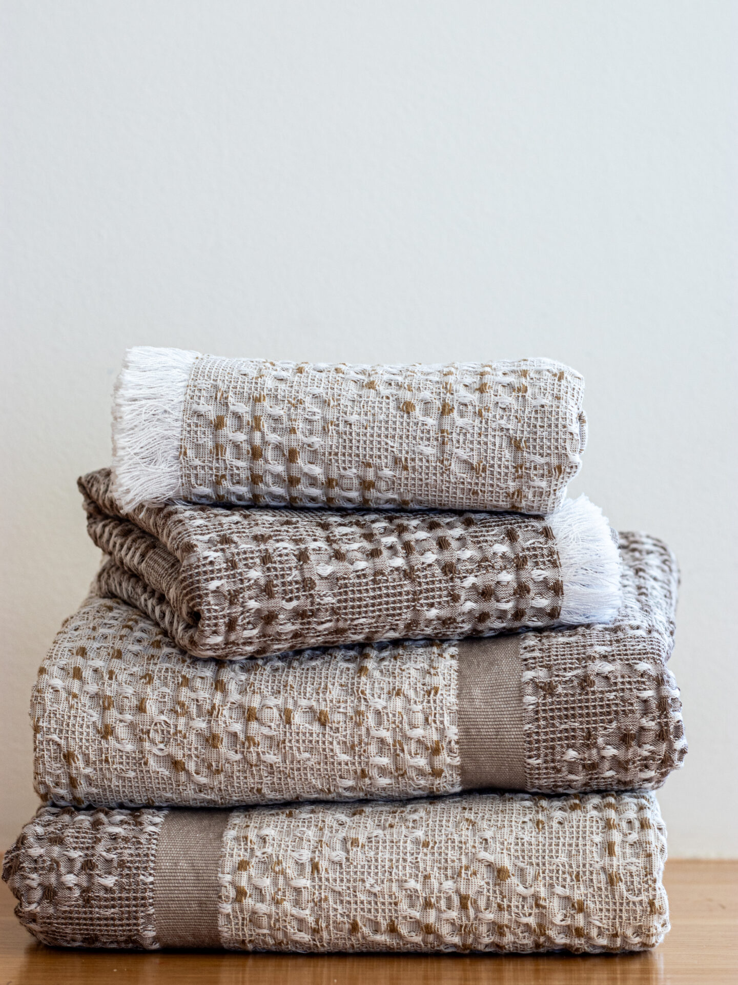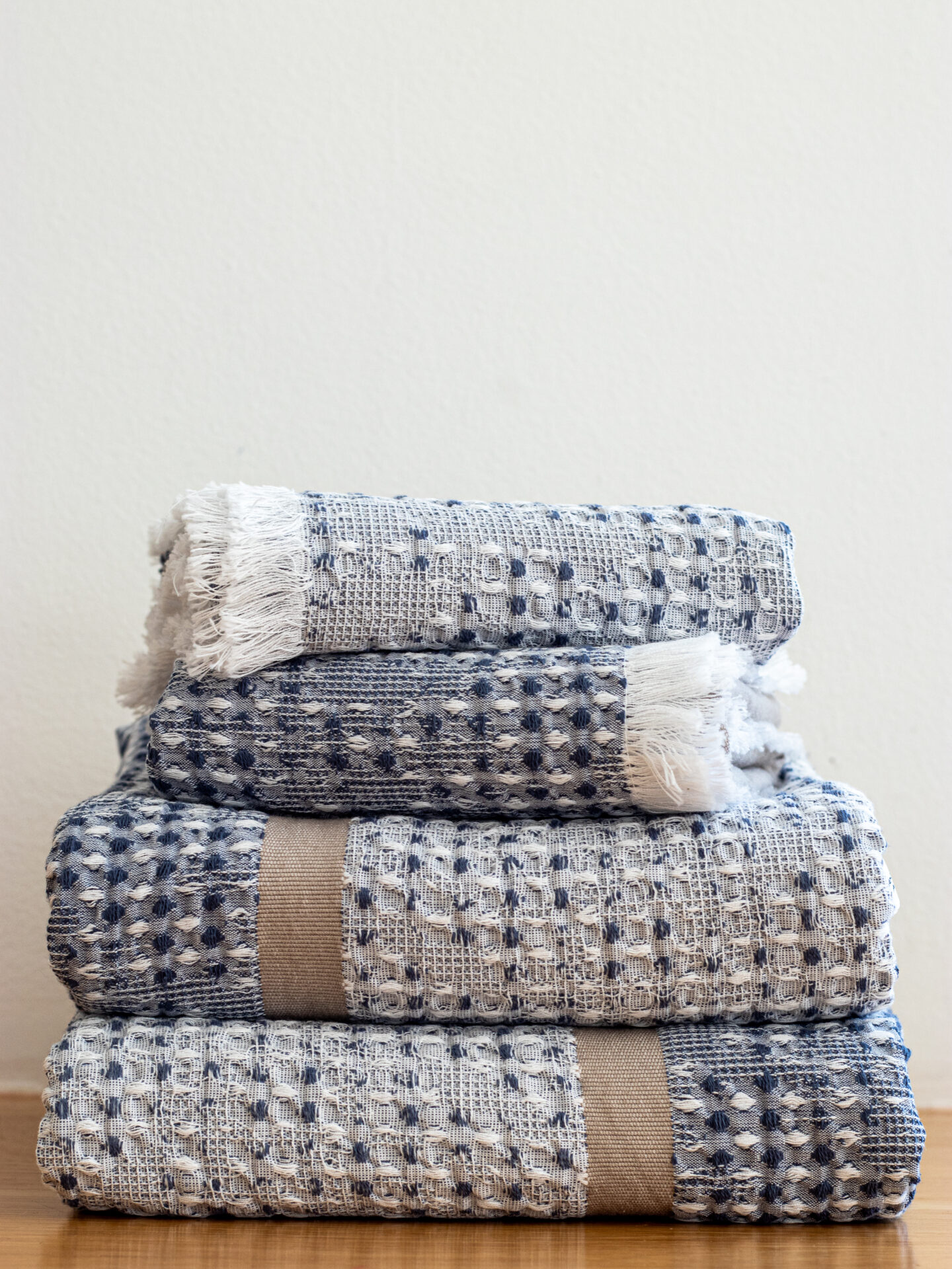 A collection designed for hospitality. Woven in 100% cotton the Mixed Waffle Collection is available bedspreads, towels and bath robes.
