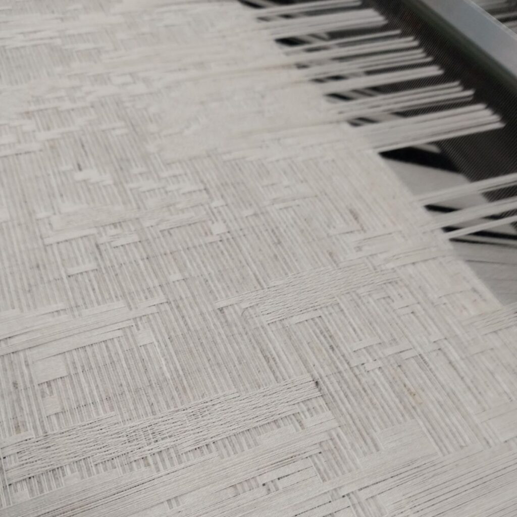 The Jacquard weaving technique enables complex patterns, extended floats, tonal shifts, and controlled light interaction. This technical range allows us to work across disciplines, from fine art to large-scale textile applications.