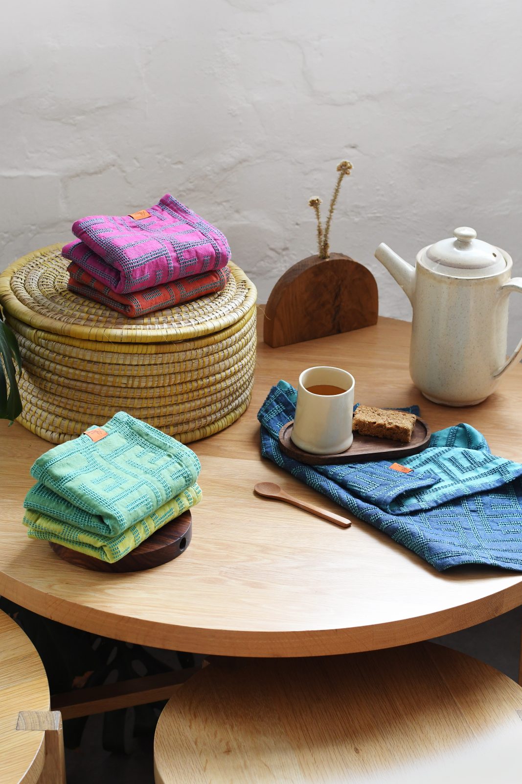 Our Kuba Summer cushion covers are inspired by the Kuba designs found in Congolese fabrics. They are Jacquard woven with a honeycomb weaving pattern mixed in with striking geometric designs.